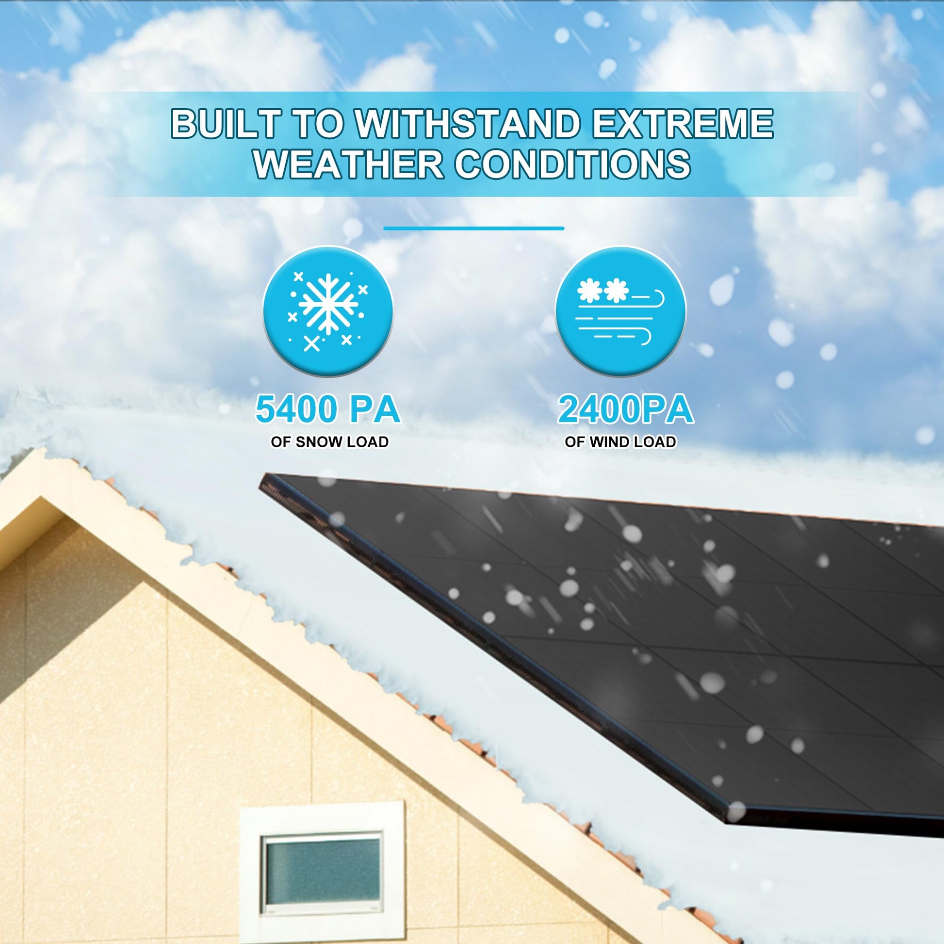 A: This 200w bifacial solar panel is designed with a high-strength, corrosion-resistant aluminum alloy frame that can withstand strong wind and snow loads. Specifically, it can withstand wind loads of up to 2,400 Pascal and snow loads of up to 5,400 Pascal, ensuring stable operation in all kinds of harsh weather conditions.